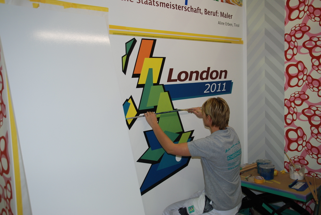 Auszuführen war eine Wandmalerei und eine Schrift, die von einer Vorlage mit zeichnerischen Mitteln auf die Wand zu übertragen war und deren Ausführung exakt und präzise zu erfolgen hatte. Weiters waren eine Lackierung inklusive der Vorarbeiten, eine Flächendekoration, bei der es auch auf die optimale farbliche Abstimmung ankam und eine Tapezierarbeit auszuführen. Die absolut Besten ihrer Altersgruppe, bei den World Skills gilt ein Alterslimit von 22 Jahren, zeigten an beiden Wettkampftagen beeindruckende Leistungen und bestätigten so die hohe Qualität in der dualen Ausbildung im Betrieb und der Berufsschule. Das Rennen klar für sich entscheiden konnte Renate Lässer aus Vorarlberg. Dahinter war das Feld sehr dicht, wobei sich hier Hubert Schiefer aus Salzburg noch vor Christine Peinthor aus der Steiermark den zweiten Platz sicherte. Renate Lässer ist keine Unbekannte in der Branche, denn sie erreichte beim Bundeslehrlingswettbewerb 2008 in Absam schon den zweiten Platz und wird somit im kommenden Jahr Österreichs Maler bei der WM in London vertreten. Aline Erben von der Firma Georg Kneringer aus Prutz belegte den hervorragenden 5. Rang, was insbesondere deswegen beachtlich ist, da sie relativ wenig Zeit zur Vorbereitung zur Verfügung hatte, die sie allerdings mit ihrem Trainer Georg Kneringer perfekt zu nutzen wusste.